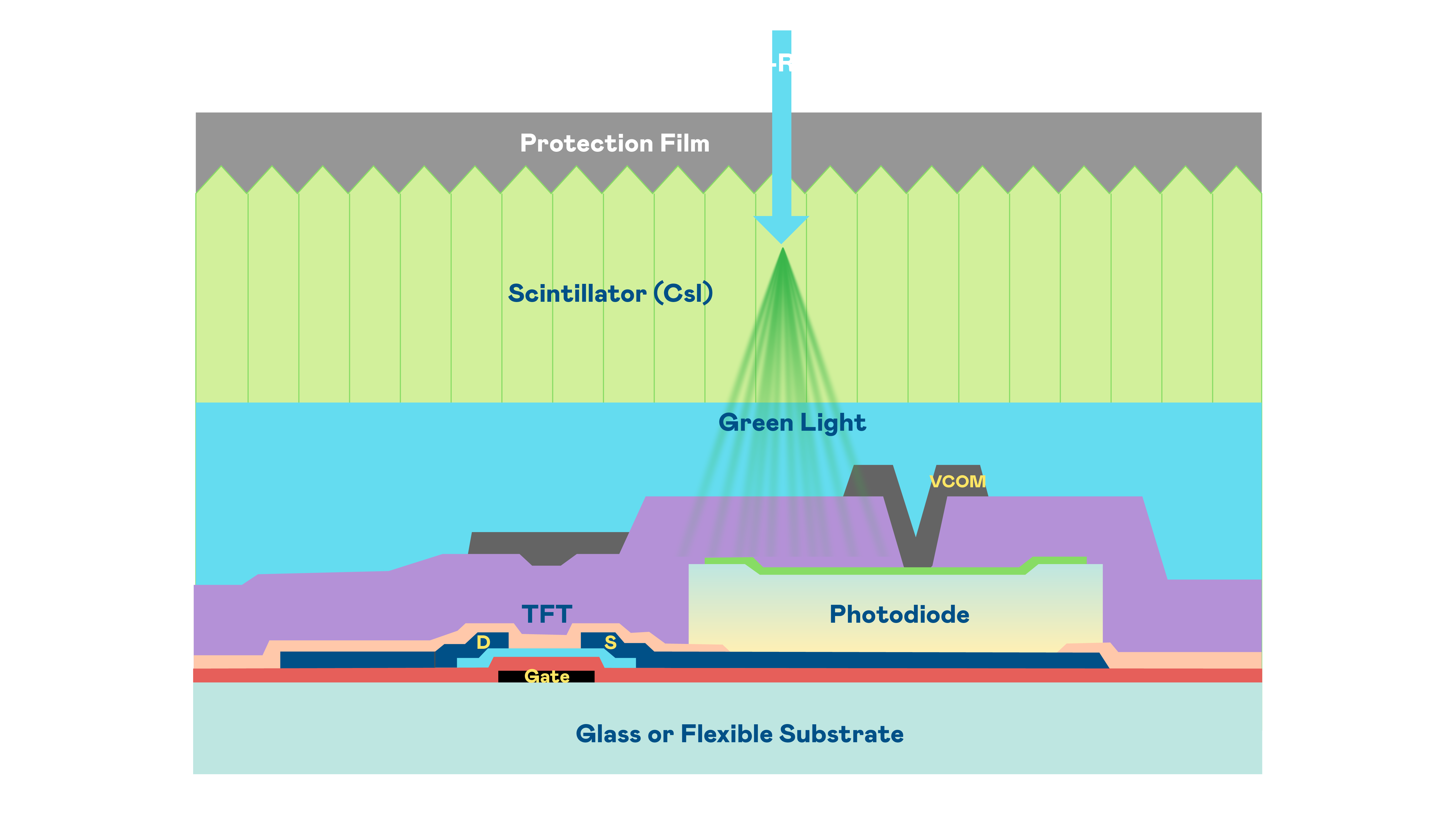 z6mg人生就是博的X光影像感测阵列使用薄膜电晶体 (TFT) 作为每个像素的读取开关,搭配光电二极体(Photodiode)的光电转换元件,用以感测X光影像讯号。